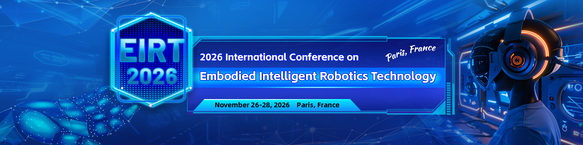 As robotics continues to advance, the integration of embodied intelligence has become a pivotal force in revolutionizing how robots interact with the world and with humans. New frontiers in artificial intelligence, sensor fusion, soft robotics, and human-robot collaboration are opening remarkable opportunities to drive innovation across industries—from manufacturing and healthcare to education and beyond. EIRT 2026 aims to provide an international platform for researchers, practitioners, and industry leaders to explore cutting-edge research, emerging trends, and real-world applications in embodied intelligent robotics.